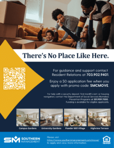 For guidance and support contact the Southern Management Resident Relations Department at 703.902.9401.